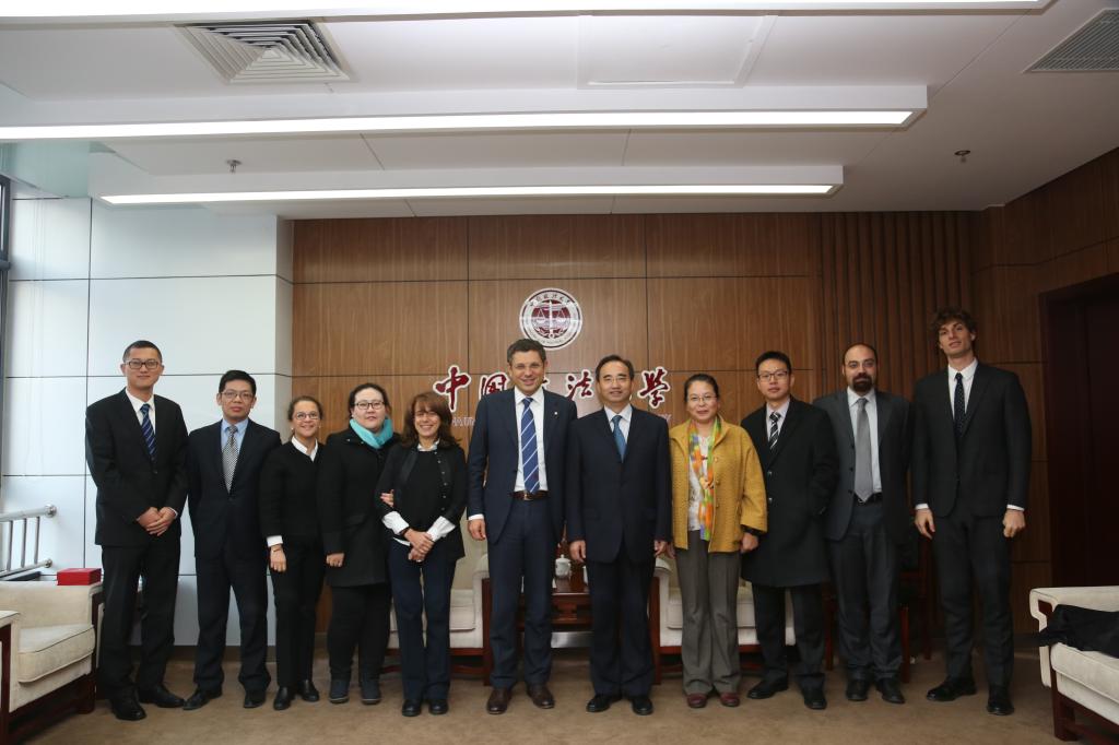 陪同出席会见的有我校法律硕士学院院长费安玲、国际合作与交流处处长许兰、中欧法学院中方联席院长刘飞、中欧法学院欧方执行院长Clements Ritcher、中欧法学院飞行教授(博洛尼亚大学教师)Carlo Tovo、中欧法学院教授助理(博洛尼亚大学博士)Marco Inglese、以及我校自博洛尼亚大学学成归国的优秀教师代表李文静、翁武耀、乌兰、徐文鸣博士。