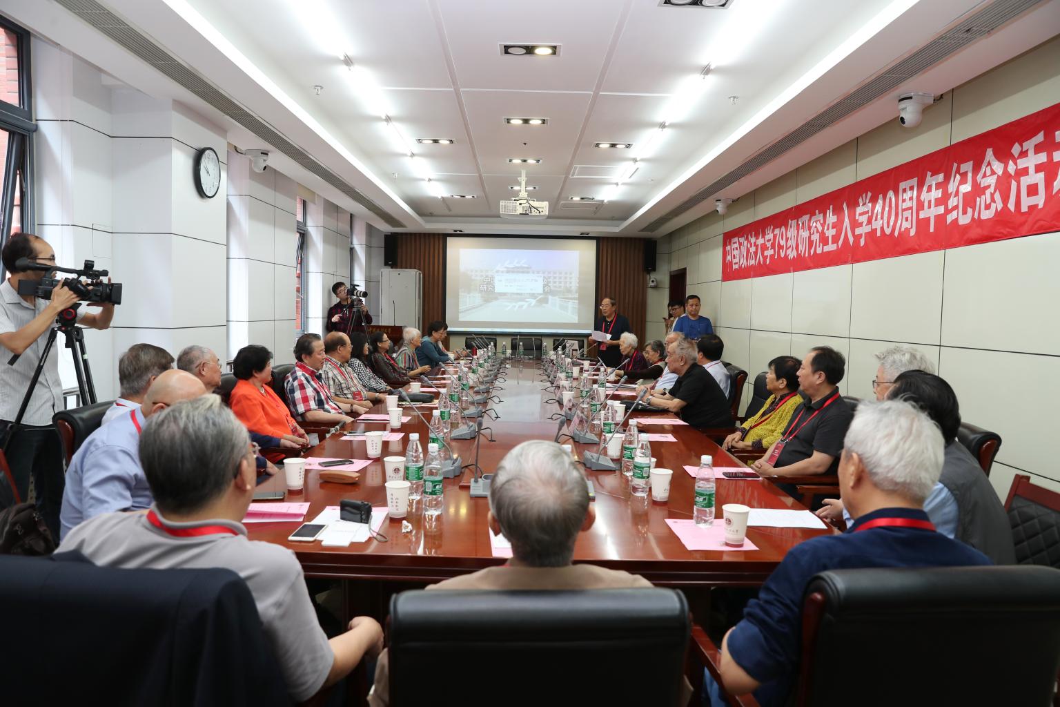 金风送爽,丹桂飘香。 9月17日上午, 影响着共和国改革开放以来法治进程的79级二十余名研究生,与恩师一道,重聚法大,谈昔日家国情怀、忆法大青春岁月,叙同窗师生情谊,商法大锦绣前程。我校副校长、校友总会会长冯世勇,终身教授江平、陈光中,当年的教师代表薛梅卿、沈国锋等,校友工作办公室主任卢少华出席会议。大会由79级研究生校友、我校原科研处处长郭成伟主持。