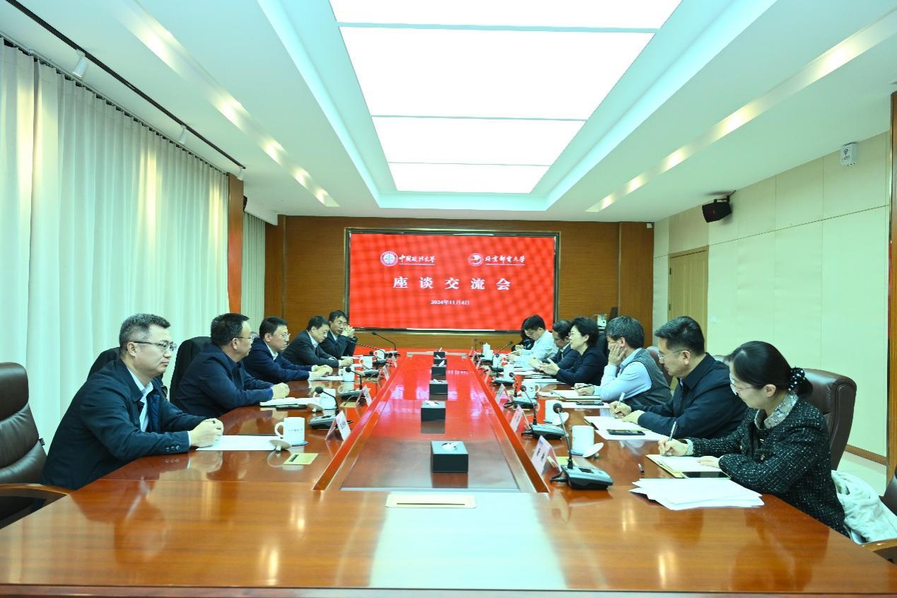 为推动校际合作,助力学校事业高质量发展,加快推动“双一流”建设,11月4日下午,党委书记姜泽廷、校长马怀德一行赴北京邮电大学开展调研工作。北京邮电大学党委书记续梅,校长徐坤,副校长苏森、彭木根,我校副校长时建中、卢春龙以及两校相关部门负责人共同参加了调研座谈。