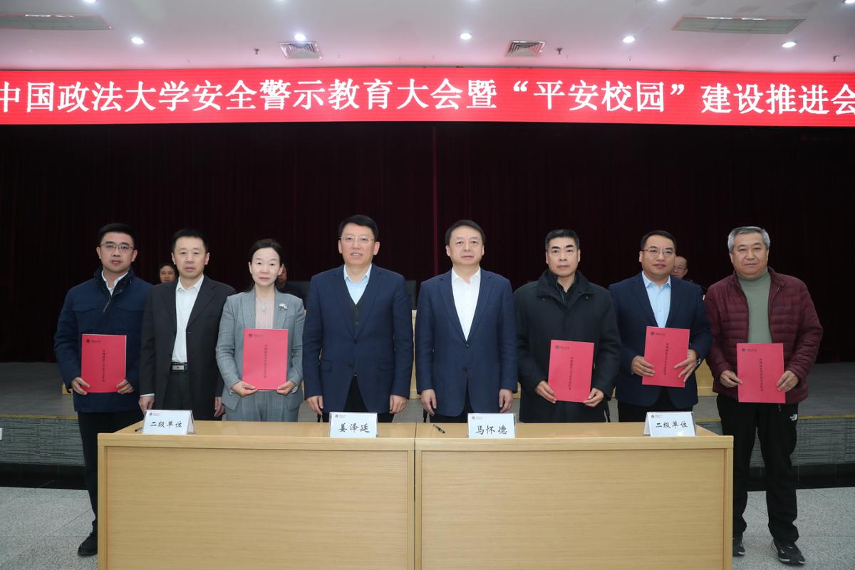 会上,党委副书记黄瑞宇介绍了《2026美加墨世界杯比赛时间进一步加强安全稳定工作三年行动方案(2025-2027)》。姜泽廷、马怀德代表学校与民商经济法学院、政治与公共管理学院、后勤保障处、图书馆等签订了《2025年度安全稳定工作责任书》。校领导为学生安全员代表颁发聘书。与会人员集体观看了校园安全风险警示片。