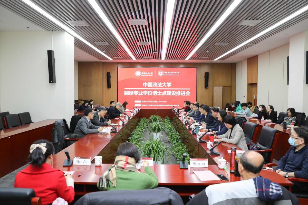 为学习贯彻全国教育大会精神,落实习近平总书记关于加强国际传播能力建设重要指示精神,12月5日上午,外国语学院在海淀校区召开翻译专业学位博士点建设推进会,邀请中国外文局、中央党史和文献研究院、北京外国语大学、上海外国语大学、四川外国语大学等单位的资深专家学者集聚一堂,共商翻译专业学位博士点的规划和建设工作。我校党委书记姜泽廷出席会议,副校长卢春龙、研究生院常务副院长于飞、外国语学院党政领导、翻译专业博士生导师团队和骨干教师参加会议。推进会由卢春龙主持。