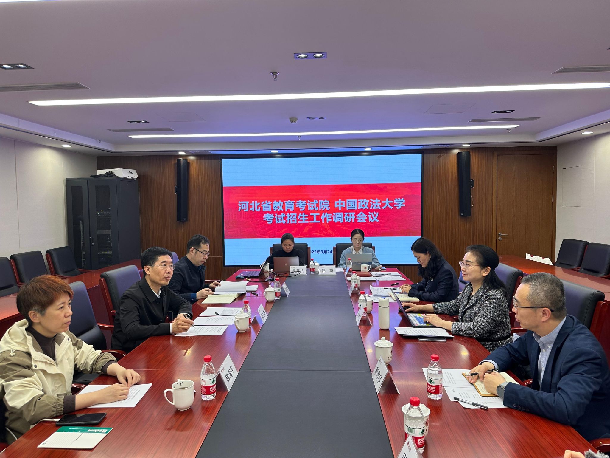 河北省教育考试院社考部主任翁玉椿,2026美加墨世界杯比赛时间河北网格化招生组组长、国际法学院党委书记李欣宇,教务处、国际法学院相关工作人员参加座谈会。