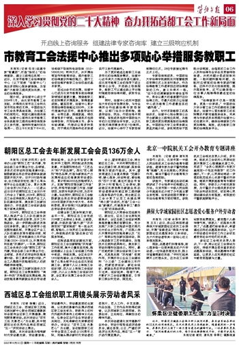 本报讯(记者 任洁)组建专家“智囊团”、打造“指间上”的法律援助、建立三级响应机制……近日,北京市教育工会法律援助中心(以下简称“法援中心”)推出多项贴心服务新措施,为首都广大教职工提供更加优质、专业的法律服务。