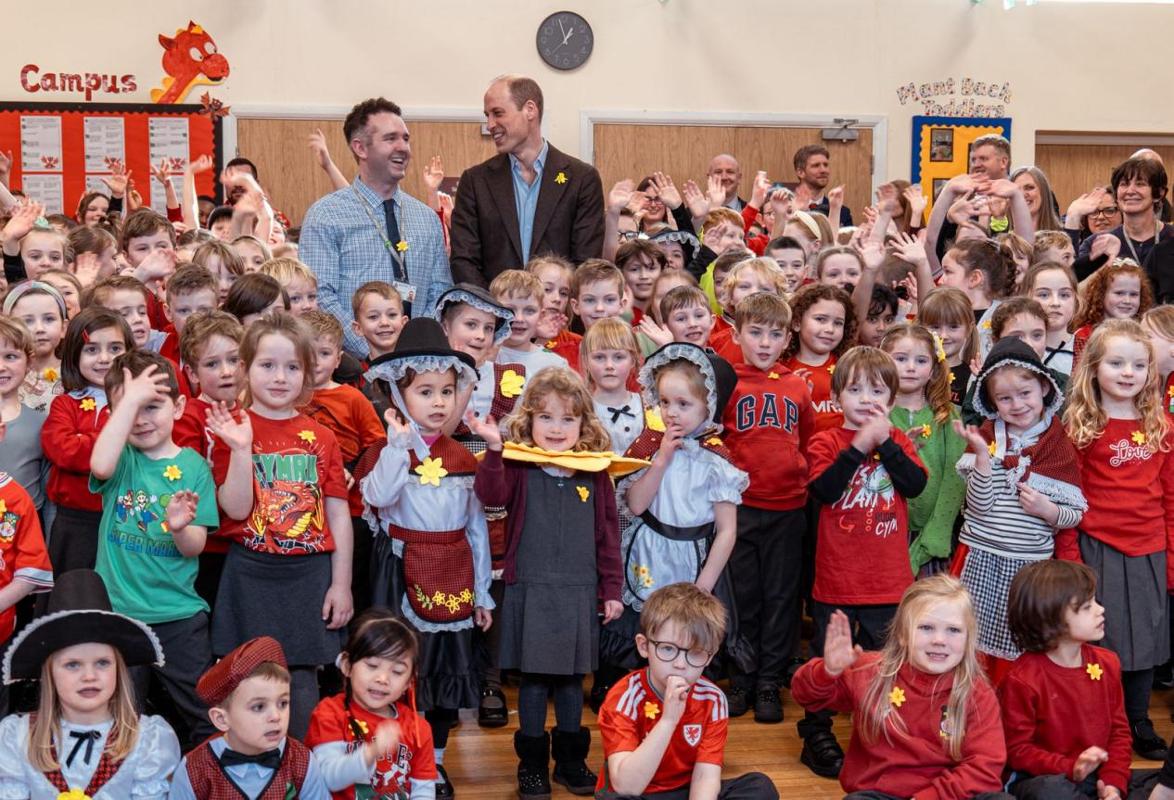 图3 威廉王子访问威尔士圣徒教会资助小学