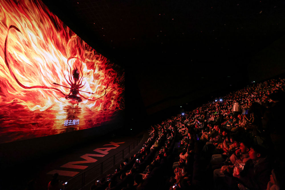 2025年2月25日,观众在贵州省贵阳越界影城IMAX影厅内观看电影《哪吒2》。新华社记者 欧东衢 摄