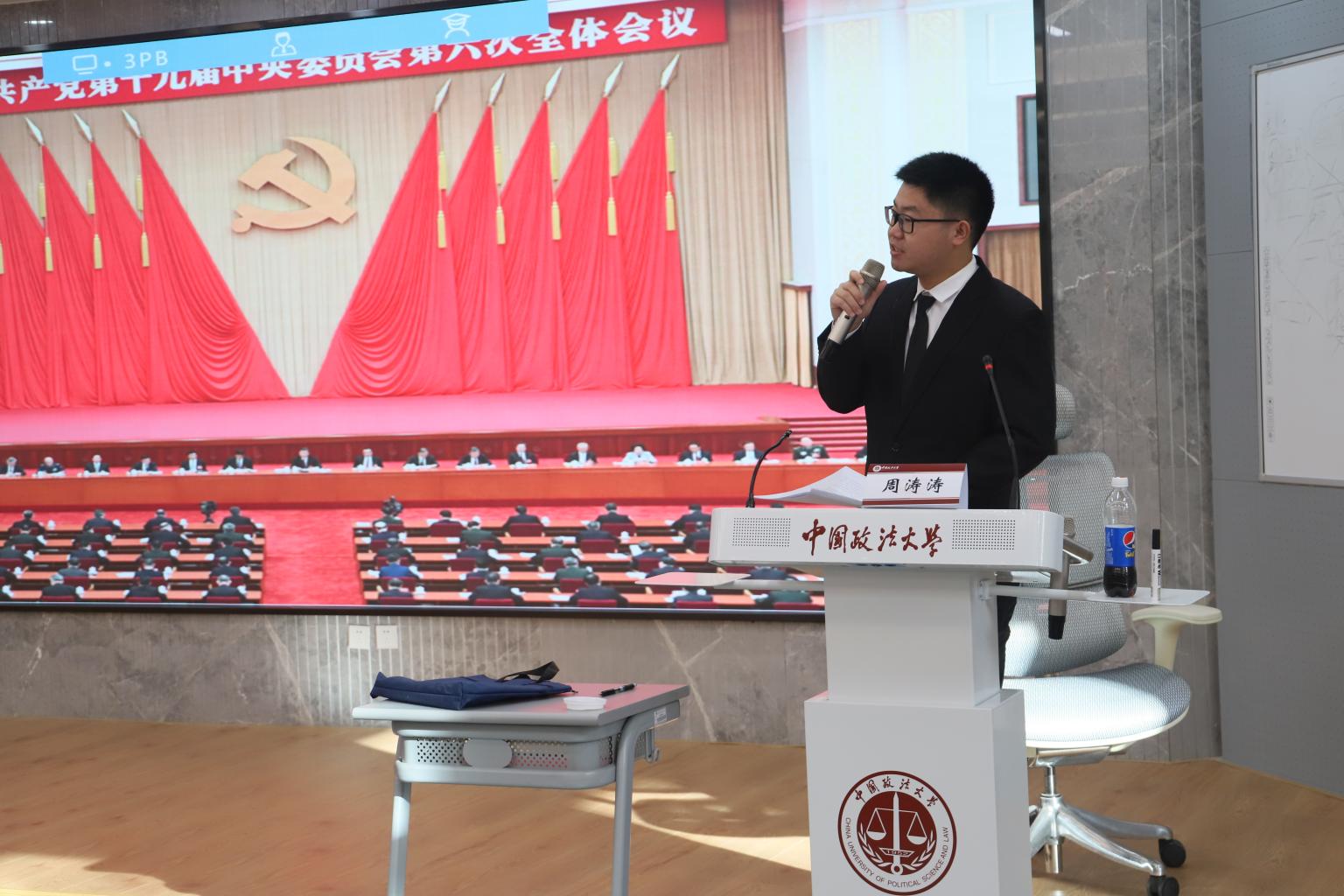 12月31日,我校于海淀校区召开党的十九届六中全会精神宣讲会。活动由研究生工作办公室主办,校党史学习教育宣讲团成员、校青春讲师团成员、马克思主义学院2019级中国近现代史基本问题研究专业研究生周涛涛作宣讲报告,为来自法学院、政治与公共管理学院、商学院、人文学院的共计49位党员同志带来一次精彩的宣讲活动。
