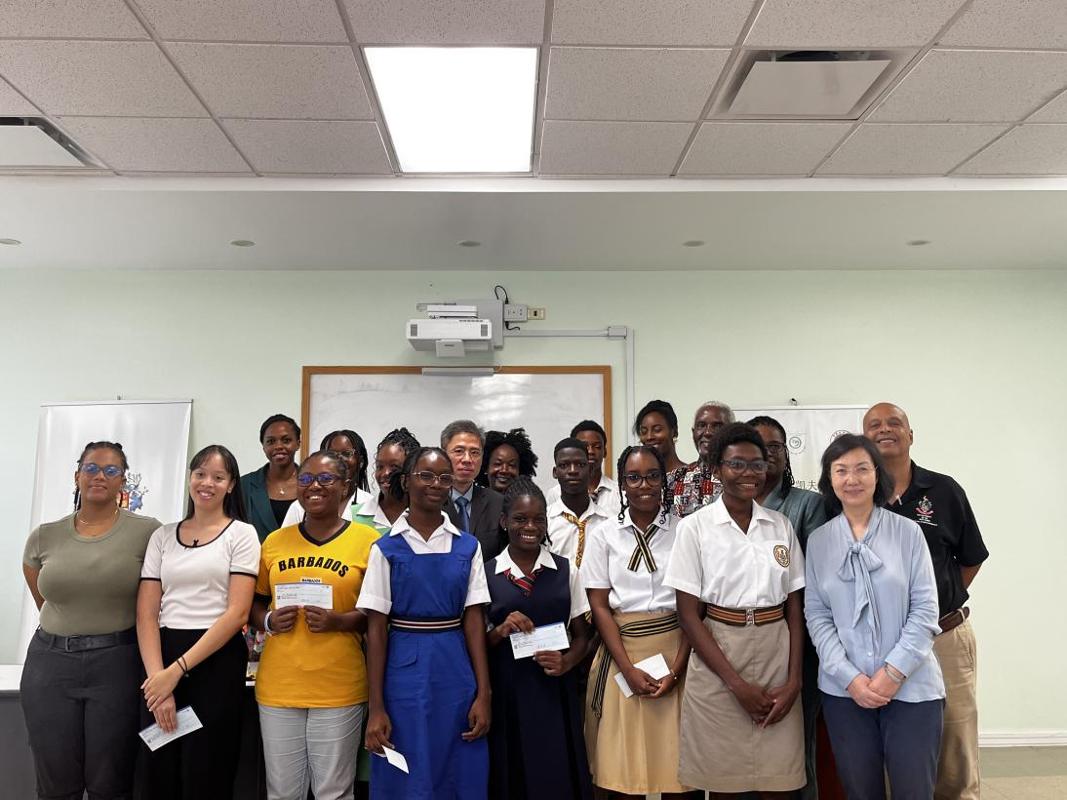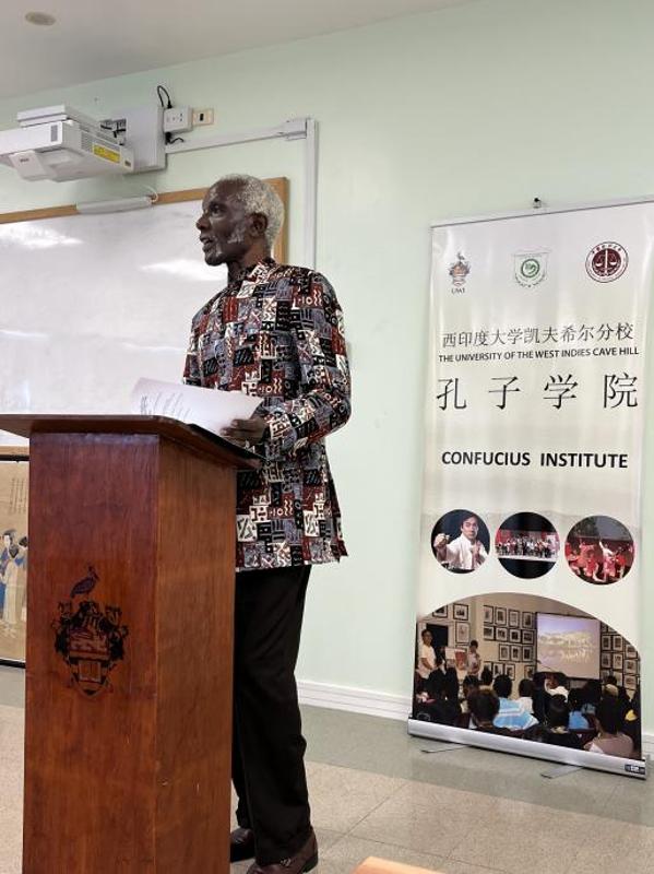 当地时间11月5日上午,我校共建巴巴多斯西印度大学凯夫希尔分校孔子学院(以下简称“巴巴多斯孔院”)隆重举行2024年“中国大使奖学金”颁奖礼。中国驻巴巴多斯大使馆代办、政务参赞黄新华、西印度大学凯夫希尔分校人文学院院长弗雷德里克·奥奇恩(Frederick Ochieng’-Odhiambo)、圣乔治小学和圣斯蒂芬小学校长代表、巴巴多斯孔院中方院长聂露教授、外方院长大卫·卜布利亚(David Bulbulia)以及来自西印度大学凯夫希尔分校与孔子学院中小学教学点的获奖者、教师和家长等近五十人参与。大卫·卜布利亚担任主持。