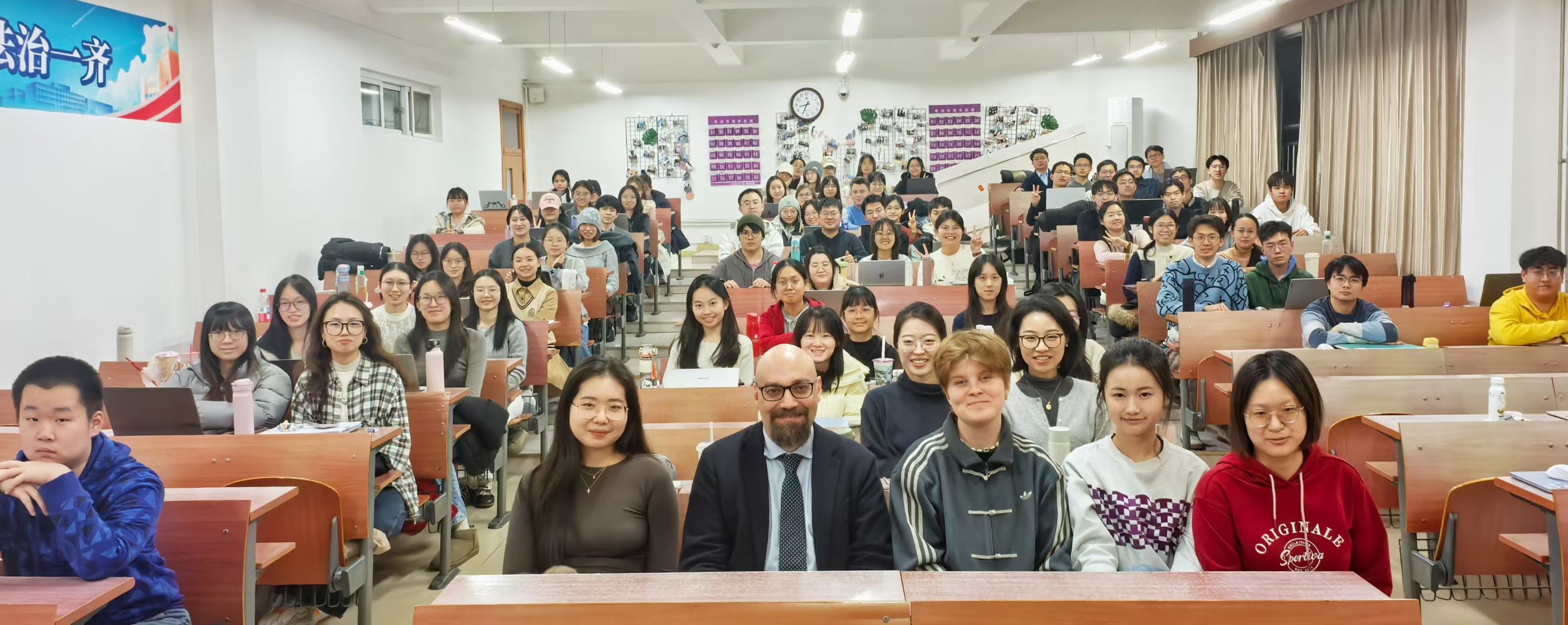 上课过程中,Marco Inglese积极与学生互动,耐心答疑;遇到难点,他引导大家讨论、思考,并用通俗实例揭示欧盟法律的运作机理。每节课后,同学们都收获颇丰。