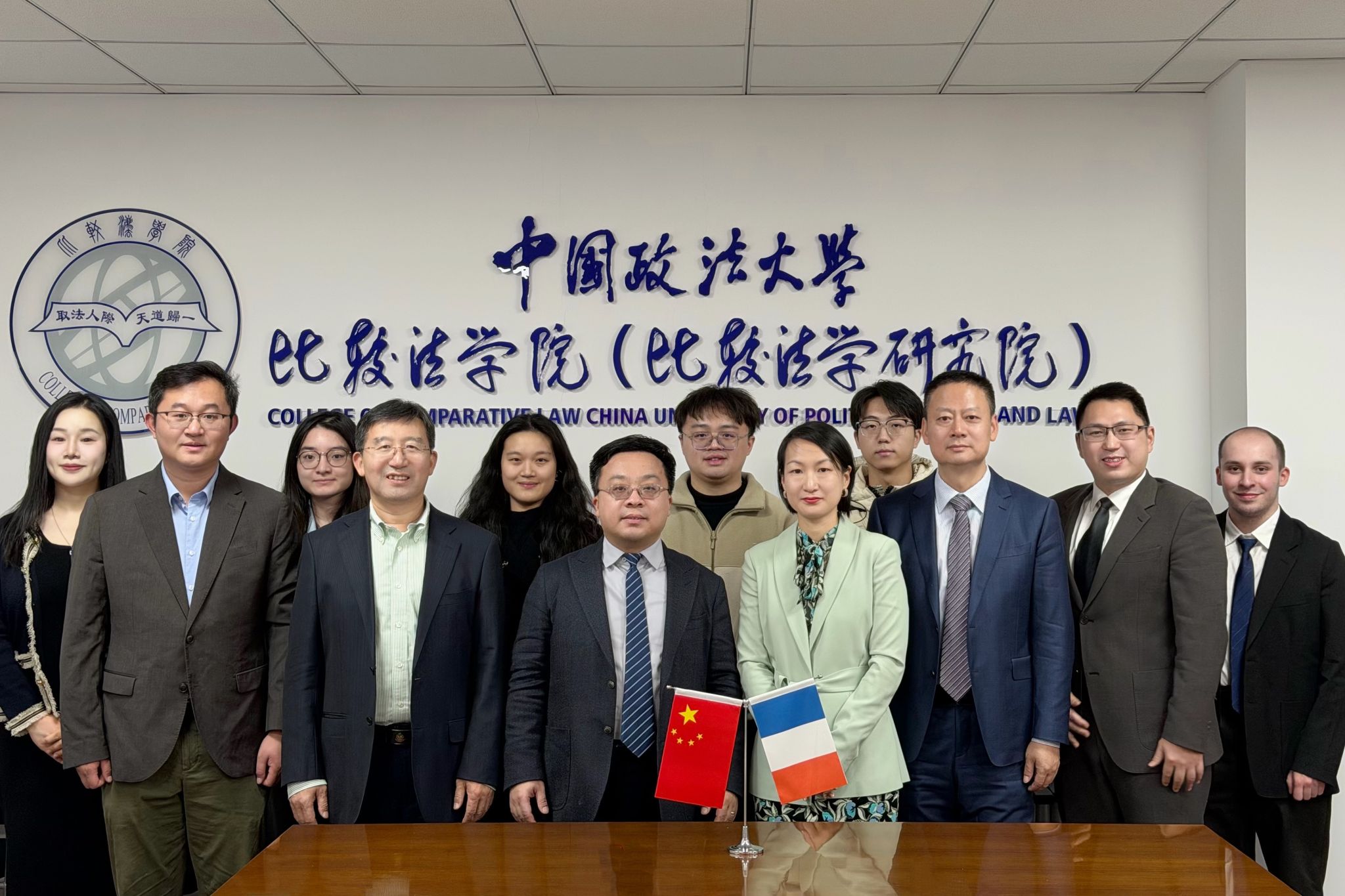 与会双方一致表示将在联合开设法国法相关课程、联合举办学术活动、提供学生赴法实习机会、设立优秀学生“励法奖学金”等方面展开进一步的合作并分别代表双方院所共同签订了合作谅解备忘录。