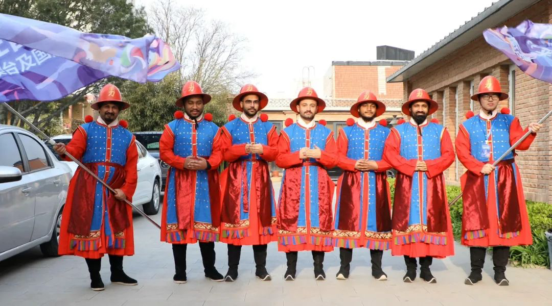 来自阿塞拜疆的国际学生萨比娜身着华丽服饰,以标准姿势向前行进。“我今天扮演的是皇帝的妃嫔,虽然这套衣服很厚重,但穿上它就像触摸到了中国历史。”展演结束后,她说,“由于平时老师会讲解明文化历史相关的内容,我觉得很有意思,所以毫不犹豫就报名参加了今天的活动。”