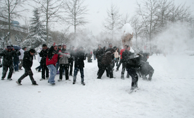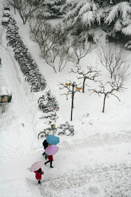 2010年第一场雪后的校园