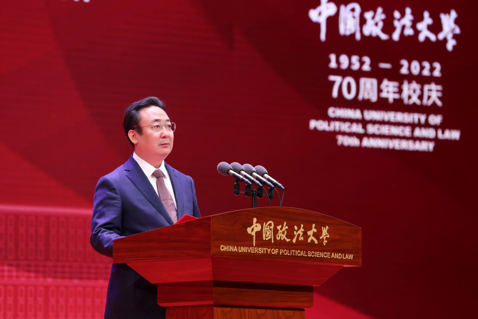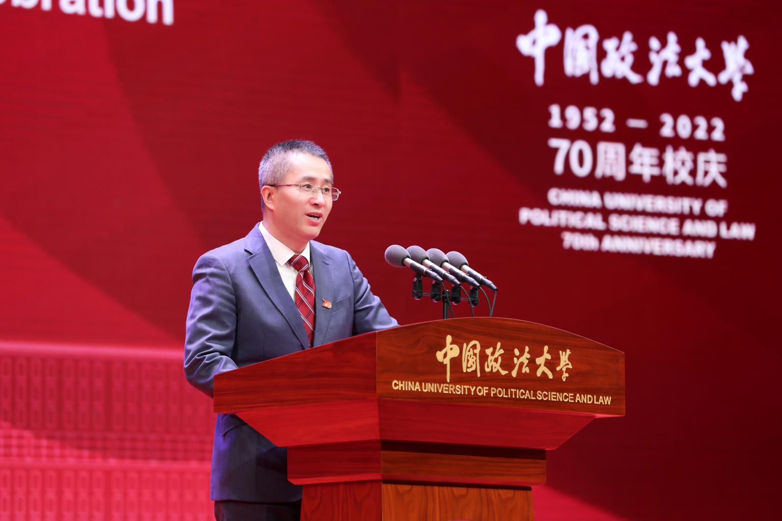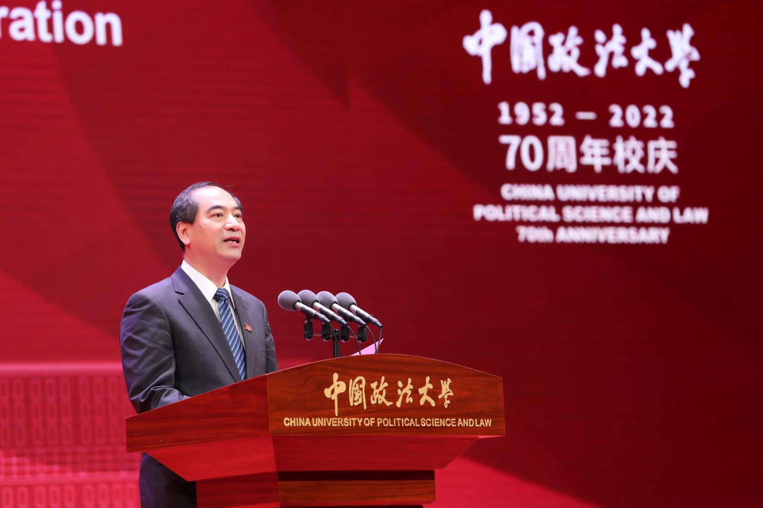 北京市委常委、市委教育工委书记夏林茂在讲话中指出,自1952年建校以来,法大始终与国家法治建设同呼吸、共命运,积极服务首都发展,承担了北京市法治建设和教育改革领域多项任务,为首都各界特别是政法系统输送了大批人才,为首都经济社会发展和法治中国首善之区建设作出了突出贡献。夏林茂希望,学校以70年校庆为契机,坚持把习近平总书记考察法大重要讲话和重要回信精神作为管党治党、办学治校的根本遵循和行动指南,把迎接党的二十大、学习宣传贯彻市党代会精神作为重大政治任务,在加强党的政治建设上树标杆,在落实立德树人根本任务上争一流,在服务国家重大战略上作表率,在服务新时代首都发展上立新功,在建设教育强国、人才强国、全面推进依法治国的伟大征程中,书写更加绚烂的历史篇章。