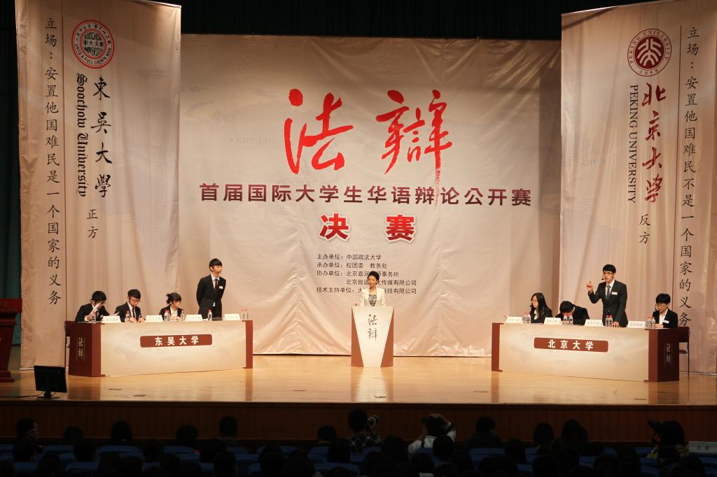 (1)2016年10月,“法辩”首届国际大学生华语辩论公开赛决赛在学校礼堂举办