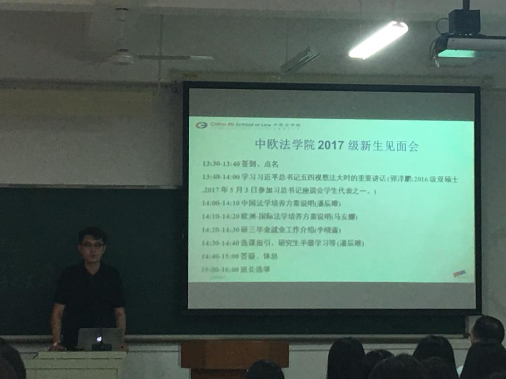 2017年9月4日下午,中欧法学院2017级研究生新生见面会在明法楼305教室举行。见面会第一项内容会为学习5月3日习近平总书记视察法大重要讲话。作为参加5月3日座谈会学生代...