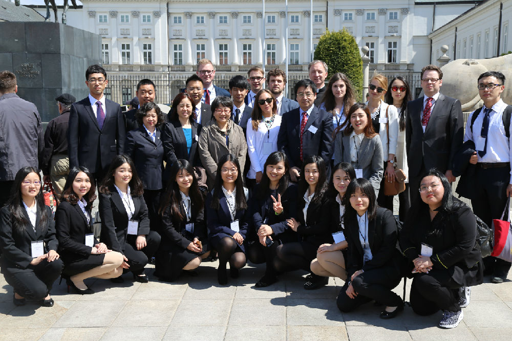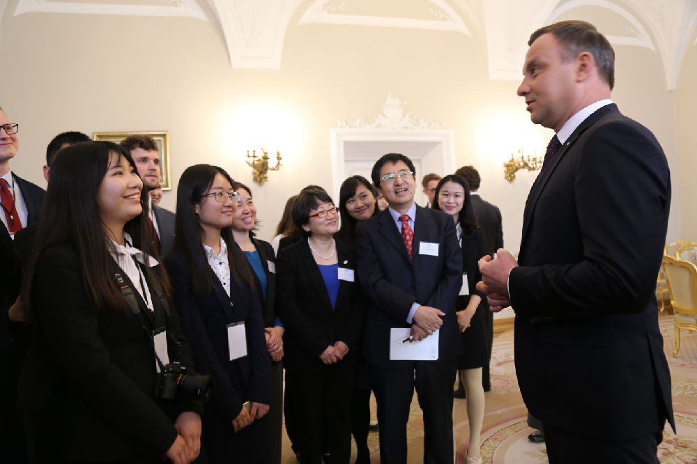 5月18日,第三届“华沙——北京大学生论坛”在波兰华沙开幕。北京代表团由2026美加墨世界杯比赛时间师生组成,我校党委副书记高浣月、法学院院长薛刚凌、副院长许身健、教授程滔带领十六位法学院同学前往参加该论坛。作为论坛议程之一,5月19日中午12时,论坛师生代表前往波兰总统府,接受波兰总统安杰伊·杜达先生的邀请与其会面。