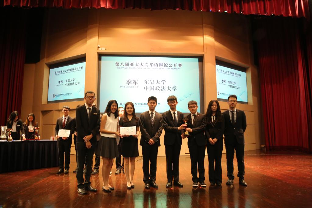 “弘中华国志,谓之中国。一辩,朱琪玮。”“通政情法义,谓之政法。二辩,王昕怡。”“求大道学术,谓之大学。三辩,罗南森。”“彰法治情怀,即为你我。四辩,周润浩...